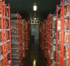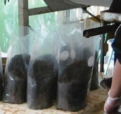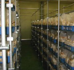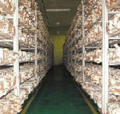 殺菌後冷却し、無菌室で椎茸菌を植菌します。